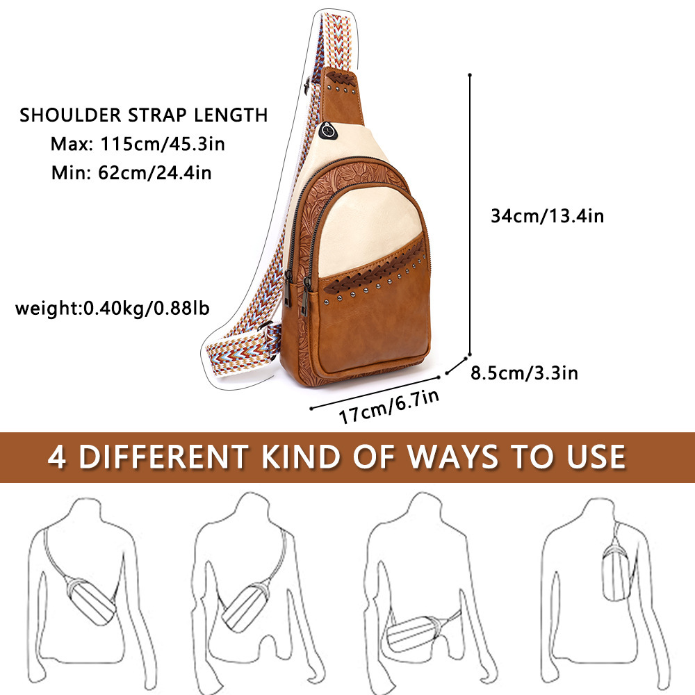 At Pawsitive21, we believe that every journey, whether a walk in the park with our 18 dogs or a day exploring a new city, deserves a companion that is both functional and soul-stirring. The Artisan Nomad chest bag was curated to celebrate the beauty of handcrafted details. The intricate floral embossing and the vibrant woven strap remind us of the diverse stories and textures that make life beautiful. Just as we cherish the unique personalities of our pets, we value the individuality this bag brings to your daily rhythm—an affordable luxury that honors tradition while embracing the modern wanderer.